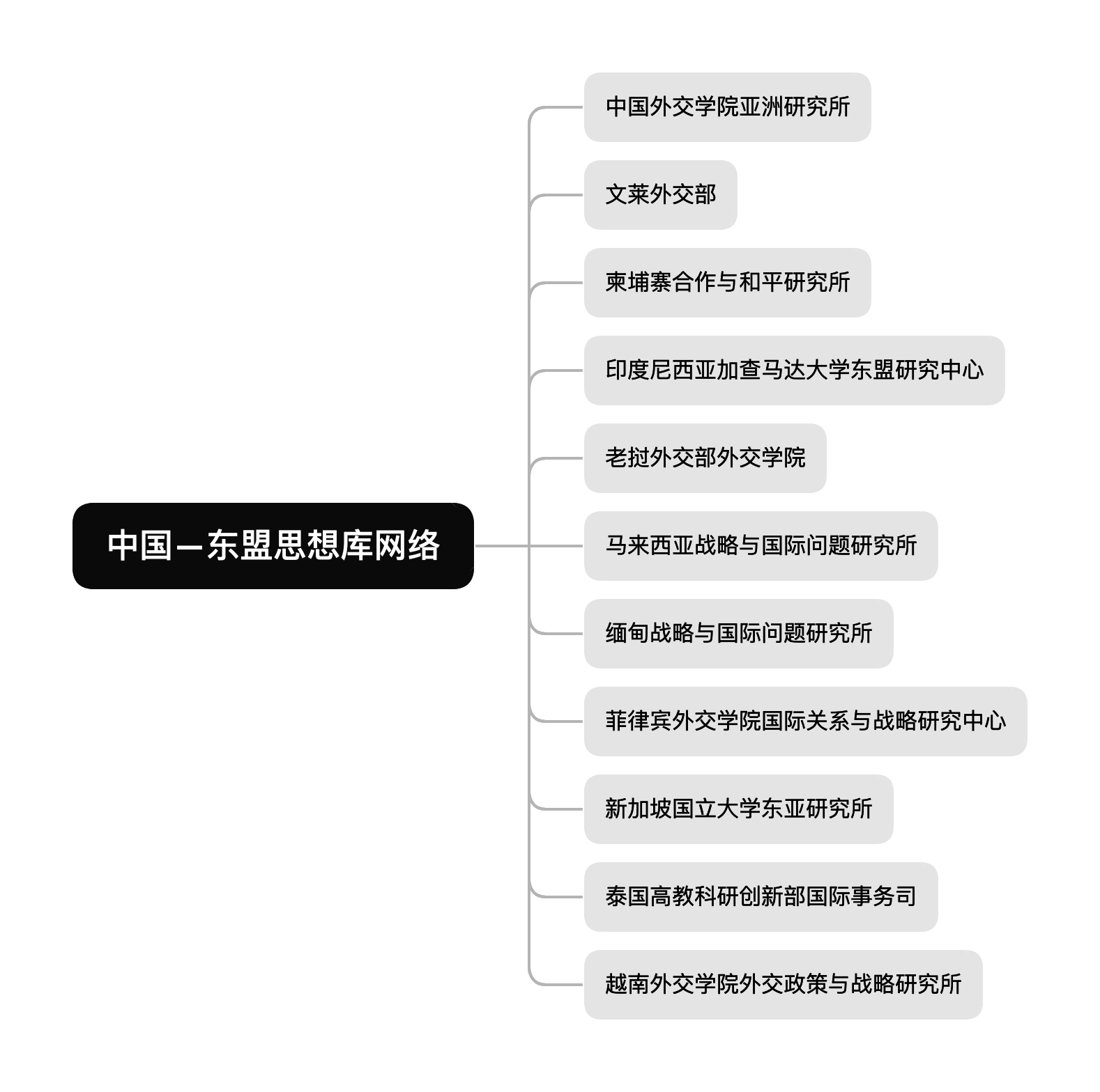 “中国—东盟思想库网络”(NACT)于2013年由中方提出,经各方酝酿于2014年正式启动,是“10+1”框架下官方认可的唯一一个思想库网络。在短短几年时间里,NACT机制建设取得重要进展,已初步建立了国家协调员会、工作组会和年会三级工作机制,地区智库网络基本搭建成型。在NACT框架下,国内研究网络和研究基地建设进展迅速,相关课题和项目研究正在全面展开